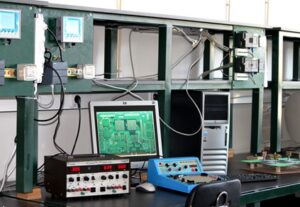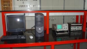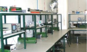 Está equipado com computadores e material de ensaio, tais como: fontes de alimentação, aparelhos de medida, osciloscópios, e geradores de sinal. Dispõe de kits de teste de eletrónica analógica, e de processamento digital de sinal, e uma máquina de prototipagem de circuito impresso. No domínio da simulação, em eletrónica, utiliza-se o Pspice e o Multisim, no processamento de sinal fundamentalmente o Matlab, e em PCB o CircuitCam.