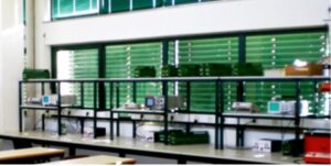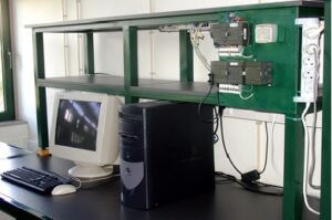 - 6 estações de trabalho, dotadas de PC com ligação à Internet e placas de aquisição de dados (NI 6024E/6014) e software dedicado (Labview, CCS, Eagle, Progecad).