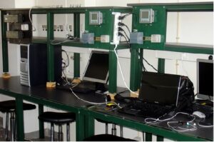 Para tal, encontra-se equipado com um conjunto de equipamentos de hardware e de software de forma que se possa projetar e simular o correto funcionamento de todo o tipo de sistemas aí estudados.