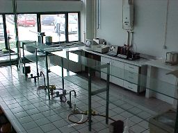 Espaço laboratorial vocacionado para a realização de diferentes procedimentos de análise de química, em particular a análise do material madeira, dos seus derivados e dos efluentes das indústrias do sector.