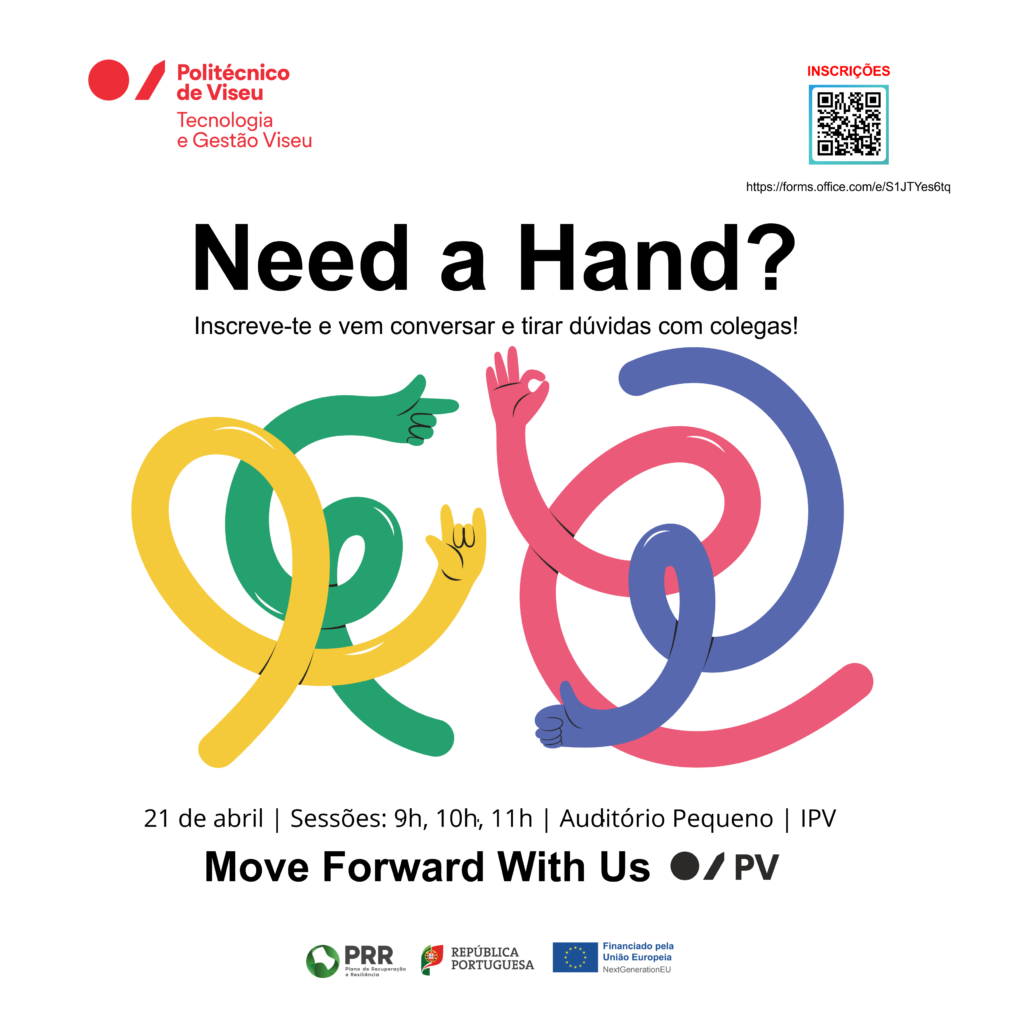 No próximo dia 21 de abril, no Auditório Pequeno do IPV, decorrerá um evento do projeto Move Forward With Us, denominado Need a Hand, com o envolvimento dos alunos de diferentes anos dos cursos da ESTGV.